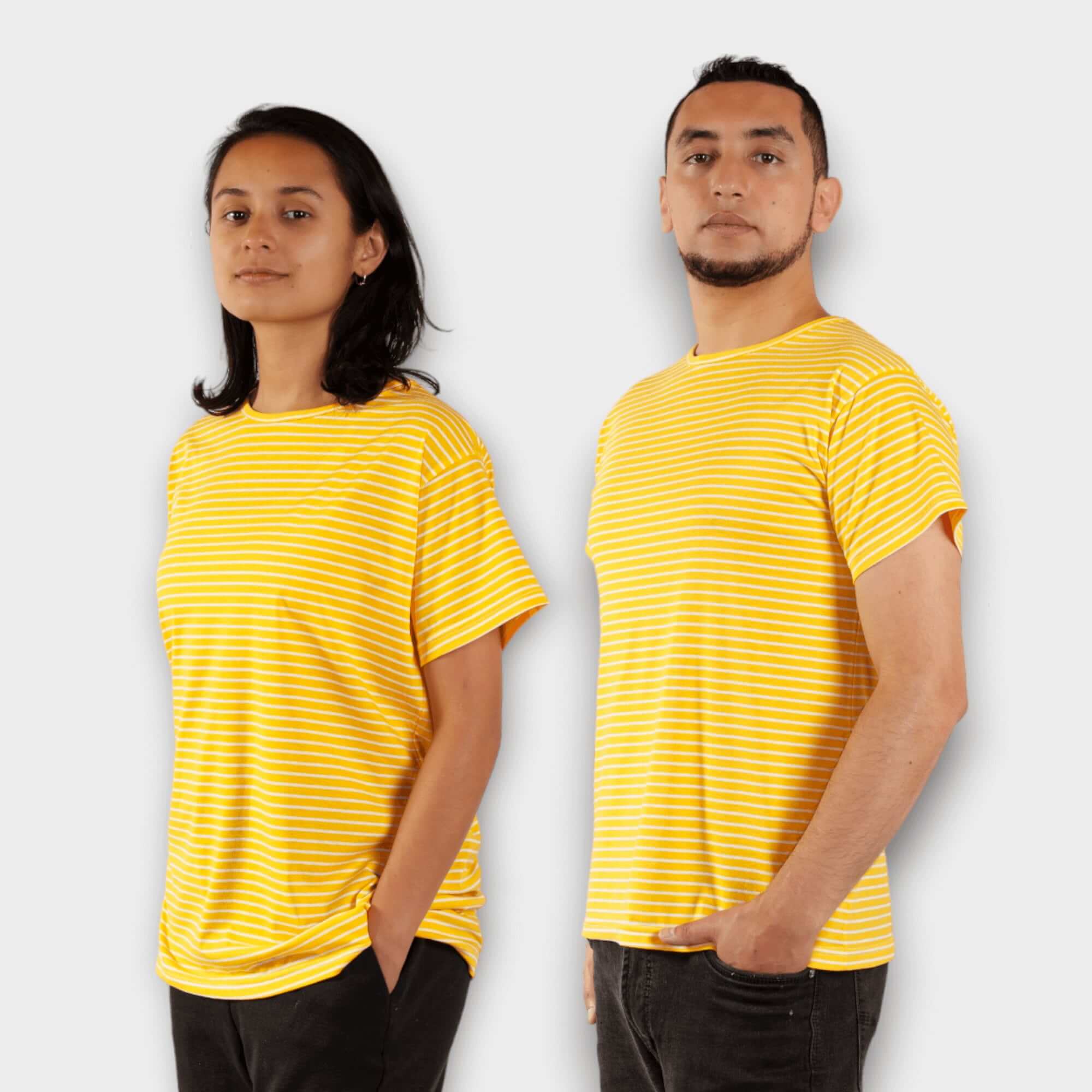 Camiseta Amarilla de Rayas Blancas para Hombre y Mujer.